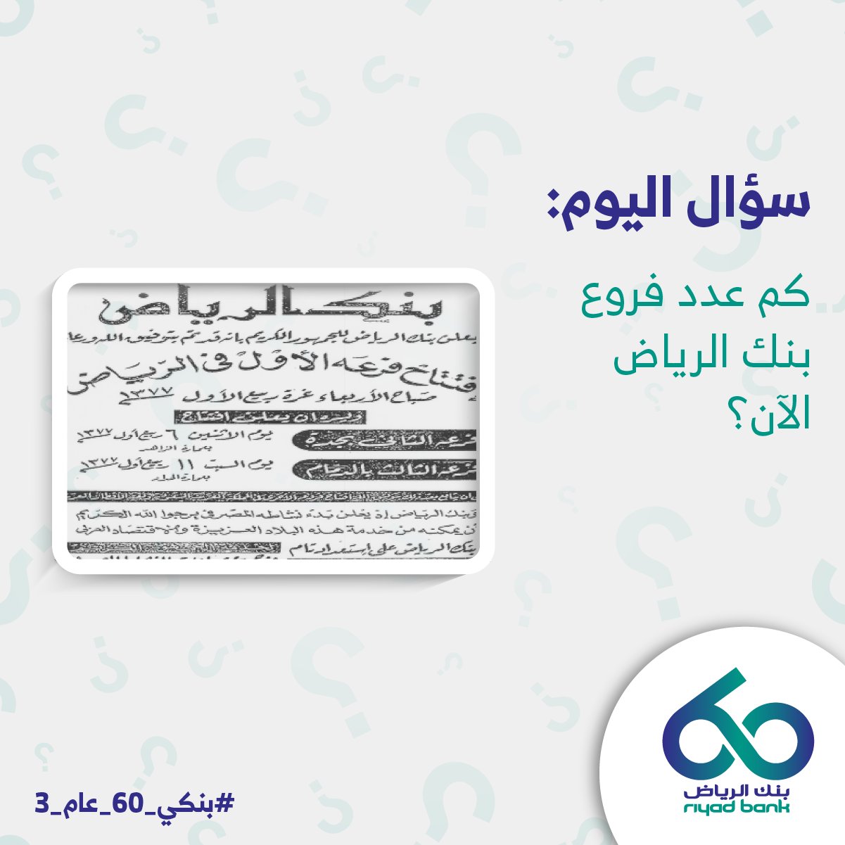بنك الرياض On Twitter في عام 1377هـ تم افتتاح اول فرع لبنكي ما هو عدد الفروع الحالي أجب بإستخدام الهاشتاق بنكي 60 عام 3