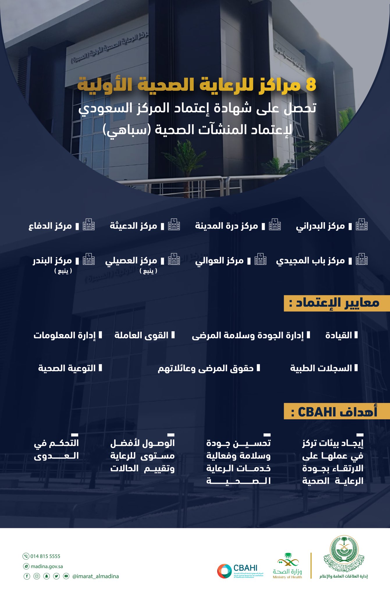 إمارة منطقة المدينة المنورة A Twitteren انفوجرافيك 8 مراكز للرعاية الصحية الأولية في منطقة المدينة المنورة تحصل على شهادة المركز السعودي لإعتماد المنشآت الصحية سباهي إمارة المدينة Https T Co U9iawyjgly